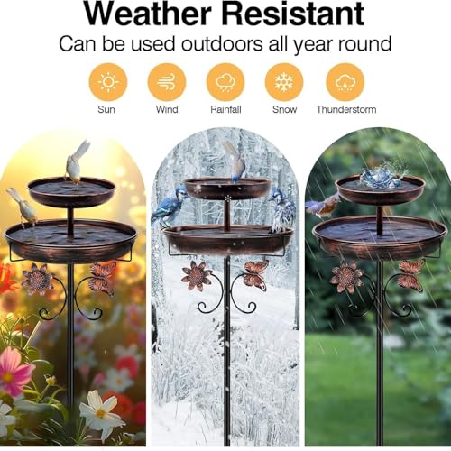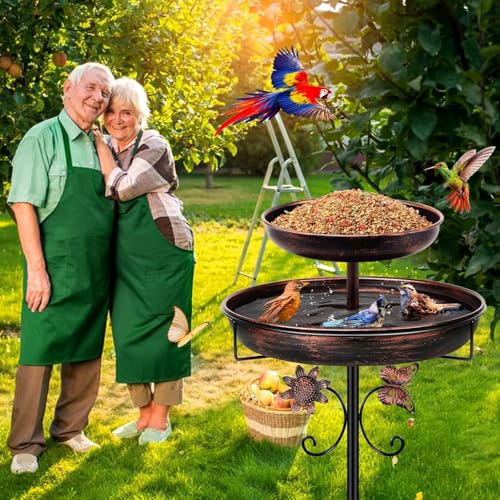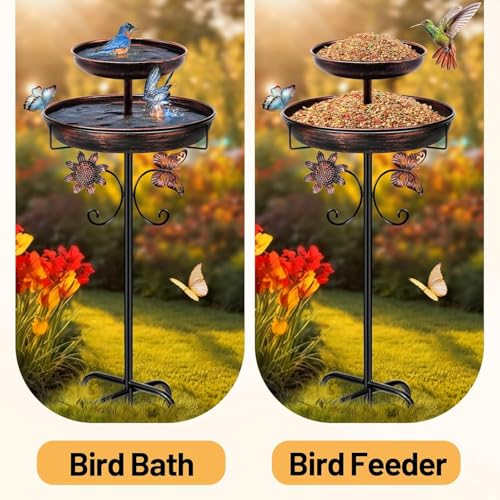 42In Vintage Metal Bird Feeder with Bath, Double Bowl 2-in-1