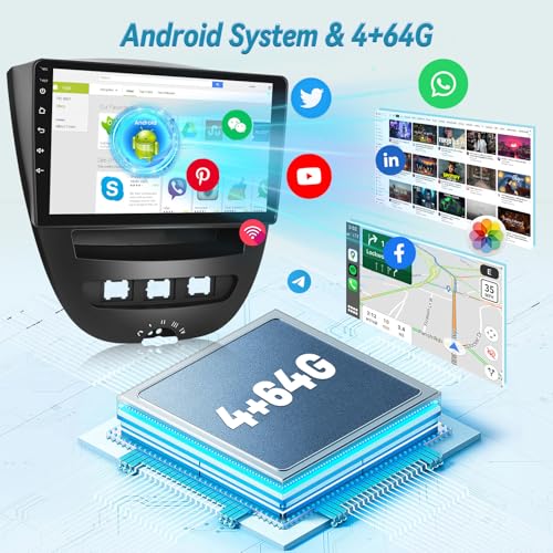- 【Applicable Models】The car radio for Peugeot 107 / Citroen C1 / Toyota Aygo 2005 2006 2007 2008 2009 2010 2011 2012 2013 2014, Please check your Car Model / Year / Shape of The Center Console with Installation Picture. Our Peugeot 107 radio has 4 Core CPU, 4GB RAM + 64GB ROM, Android system