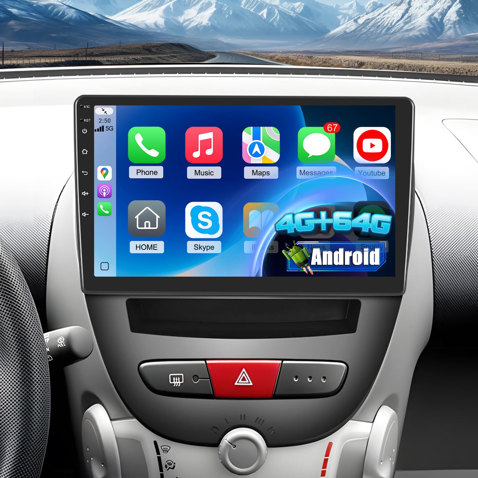 4+64G 10 inch Screen for Toyota Aygo/Peugeot 107 / Citroen C1 Radio 2005-2014, Android Touchscreen Aygo Car Stereo with Carplay/Android Auto/Bluetooth 5.0/32 EQ Audio