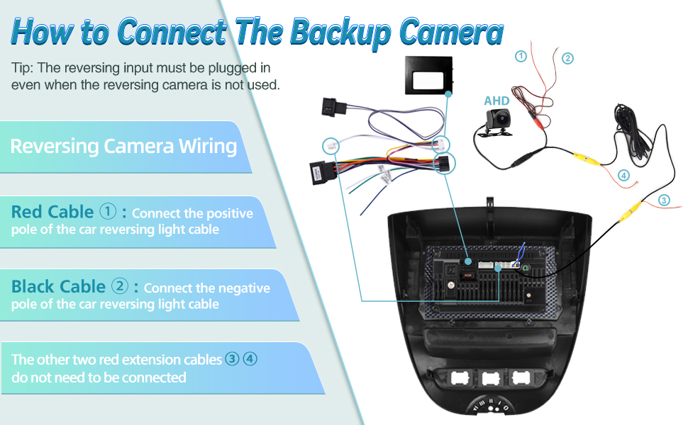 - 【UI Themes & Split Screen & AHD Camera & USB Input】Includes UI desktop themes set in ‘Themes’; Split screen is convenient for you to open two interfaces at the same time; a night vision waterproof AHD rear view camera included, It will switch to the rear view automatically when reversing, increase security; Double USB cables for wired use