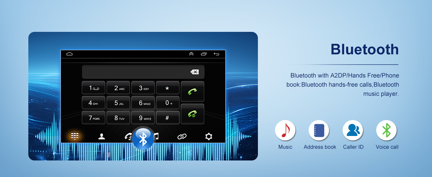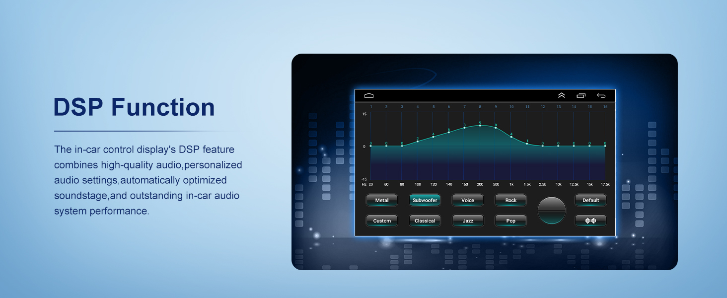 1 WIFI 2 Bluetooth 3 GPS Navigation 4 Backup Camera 5 SWC Function 1 Note 2 AM/FM Radio 3 Split-Screen 4 DSP Function 5 Mirror Link