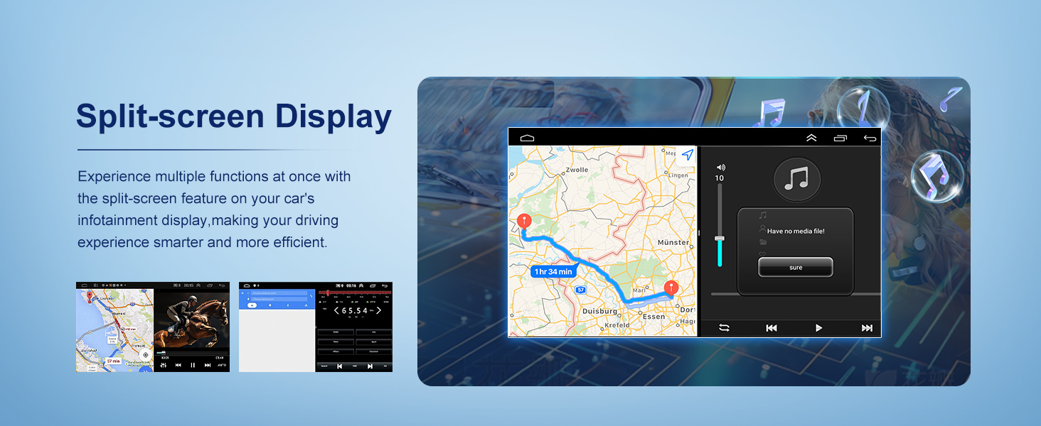 【Support Mirror Link & Split Screen】Support WIFI screen mirroring from IOS and android smartphone. two pages can be displayed at the same time, such as navigation and music display at the same time.It will provide a safer experience for your driving.