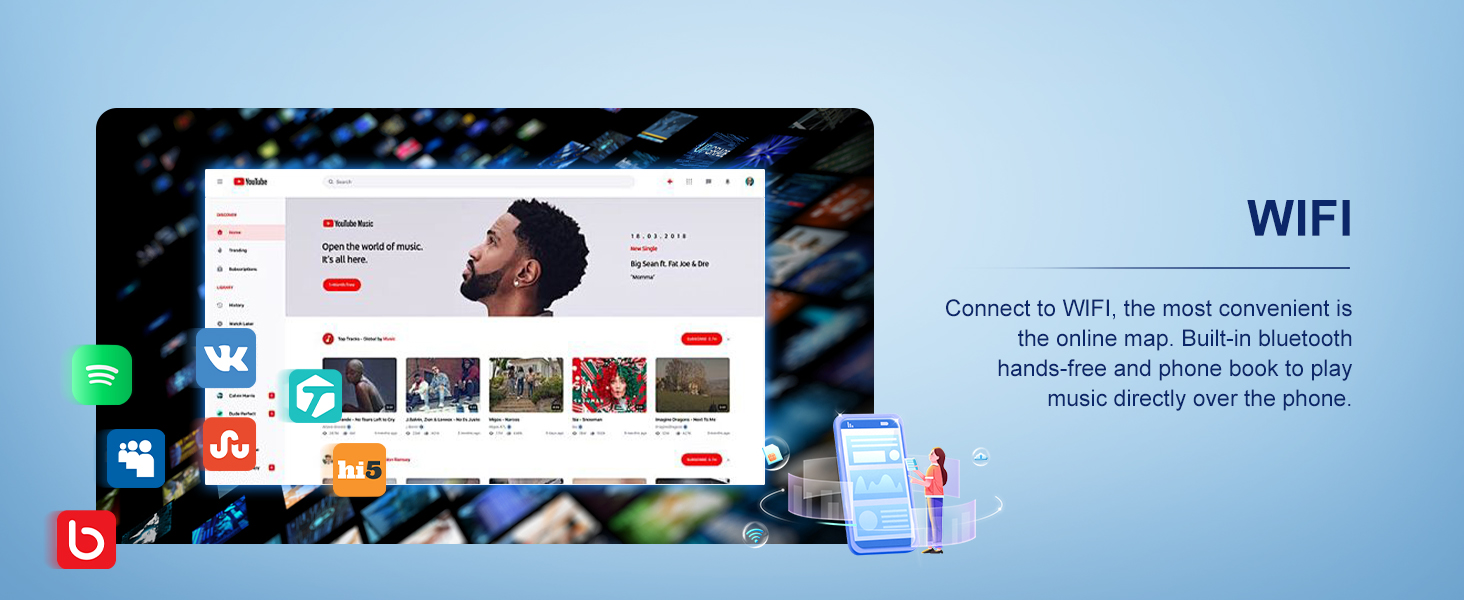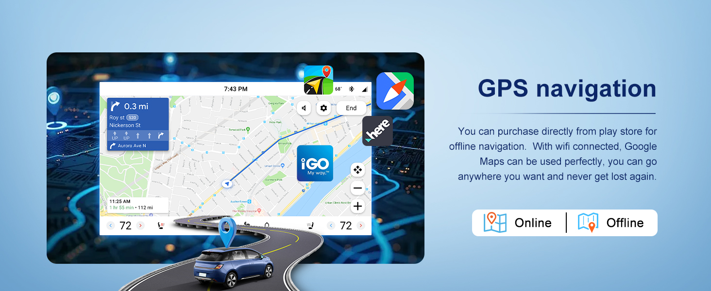 With wifi connected, Google Maps, Steering wheel control, Rear view function,2 Din Touch Screen.