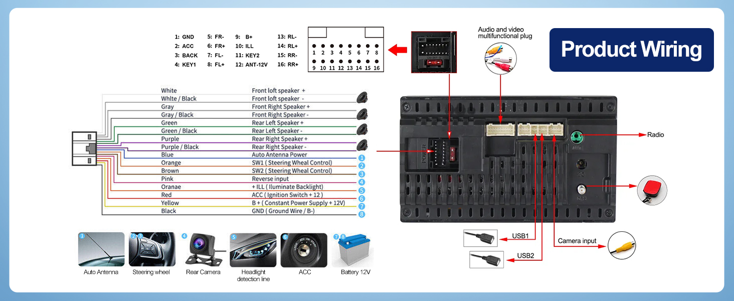1 Car Stereo 2 Wireless Carplay 3 Product Wiring 4 Camera Installation 5 Packing List