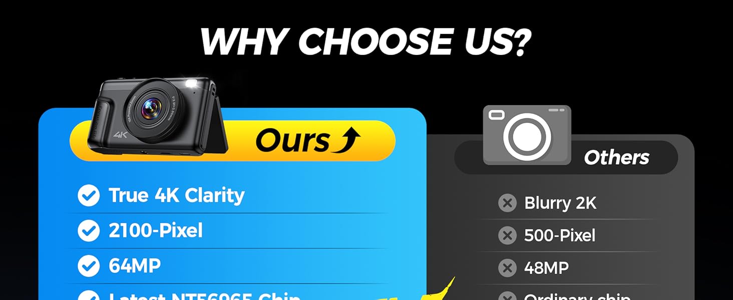 4K Digital Camera for Photography Vlogging: 64MP Compact