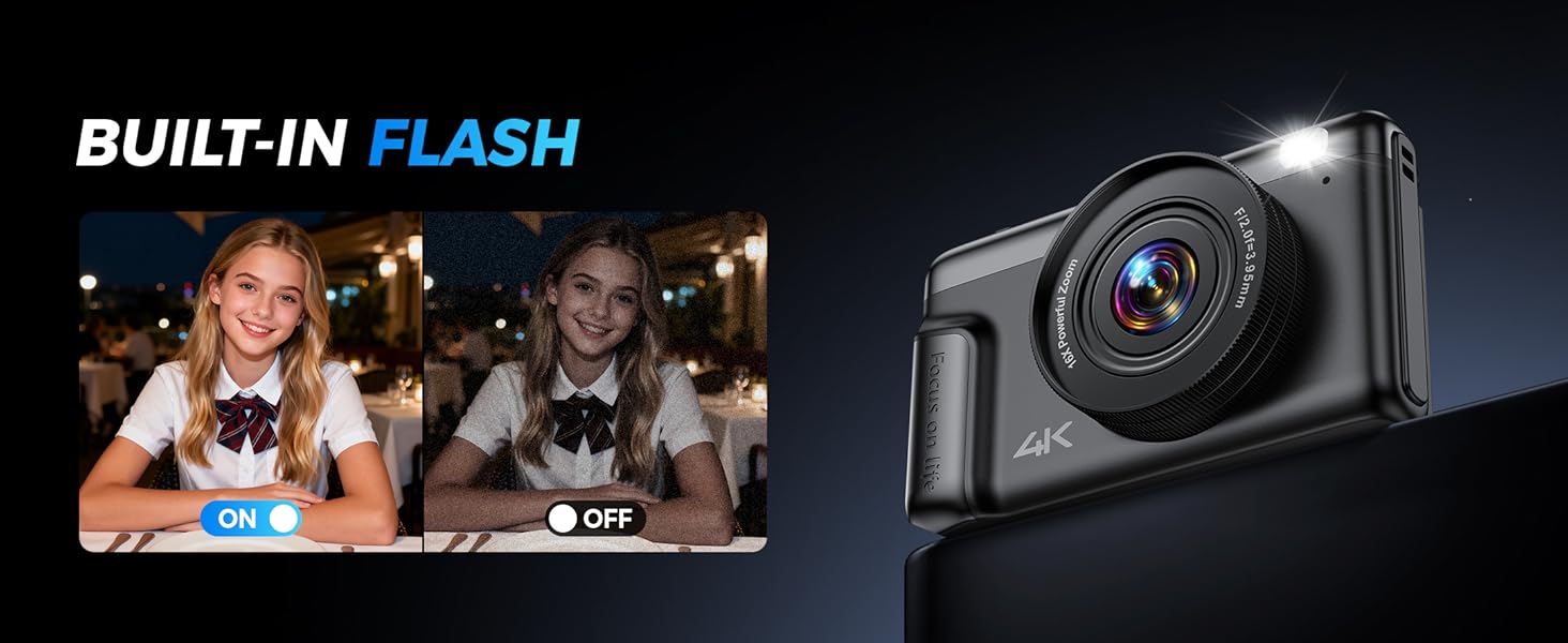 【Christmas Gift & 1-Year Warranty】Are you still looking for a Christmas or birthday gift? You'll love this digital camera. The gift packaging is ideal for family and friends to capture lasting memories. Our professional team offers you a one-year warranty. If you have any questions about the product, please contact our customer service at any time.