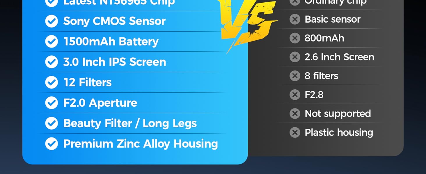 【Portable & 6-hour battery life】Weighing only 300g with a robust magnesium housing – ideal for backpacking. 1500mAh battery – One battery charge lasts 6 hours, type-C connection charges on the go via power bank. Supports the installation of 256GB SD cards. This camera is your ideal travel companion, allowing you to capture every precious moment.