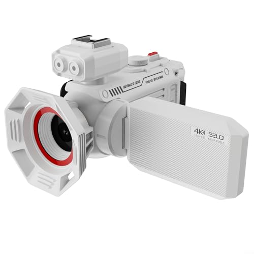 4K UHD Digital WiFi Camera Recorder, Lightweight Cam-corder Video Camera With 50X Zoom & 53MP Compatible For MICROSD Storage Media(White)