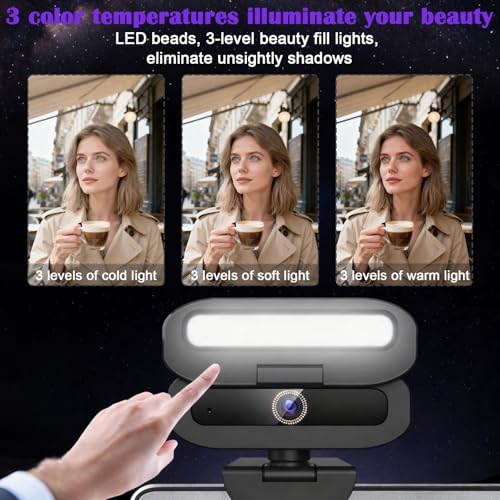 - 【3 Color Lighting with 3 Adjustable Brightness Levels】: Our Webcam 4k comes with a soft and beautiful lighting design, supporting cool, soft, and warm lighting. Each light has 3 adjustable brightness levels, providing clear and well lit visual effects even in low light conditions, helping you easily deal with various lighting environment and enabling HD video experiences anytime, anywhere