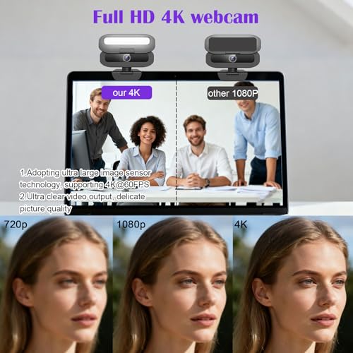 4K Webcam for PC, Webcam with Microphone & Light & Privacy