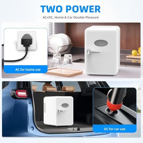 Multiple Power Options: The Vexloria Mini Fridge offers unparalleled flexibility with its dual AC and DC power options. Whether you're at home or on the move, this fridge has you covered. With the inclusion of 2 power cords—1 AC and 1 DC, it's incredibly convenient. For use at home or in the office, simply plug in the 230V AC power lead to any standard outlet. When you're traveling in your car, the 12V DC power lead can be easily connected to the car cigarette lighter, ensuring your items stay cool no matter where your journey takes you.