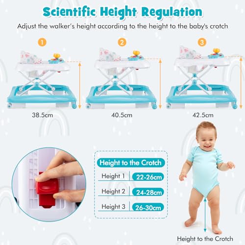 Scientific Height Regulation: Adjustable heights at 38.5 40.5 and 42.5cm adapt to growing babies parents can match the height to baby’s crotch to scientifically prevent bow legs.