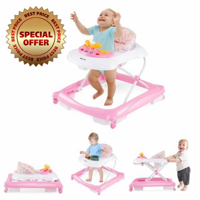 - Smooth Rolling & Speed Control: Front universal wheels enable smooth noiseless movement rear speed-reduction wheels help control baby’s walking pace letting kids move freely without danger.