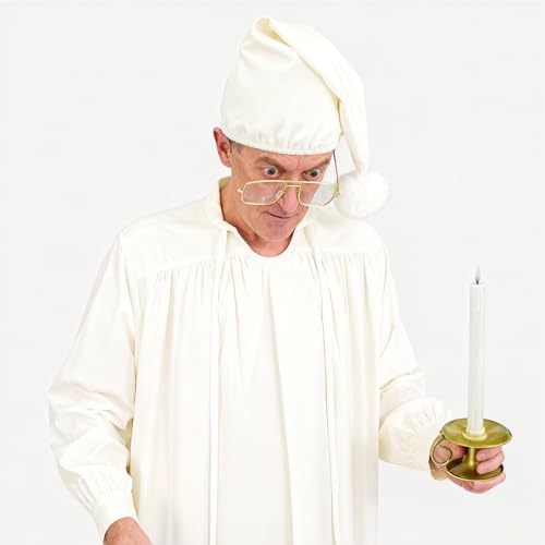 5 Pcs Men Scrooge Costume Pajama Hat Glasses Candle Holder Halloween Christmas Carnival World Book Day Outfit Beige