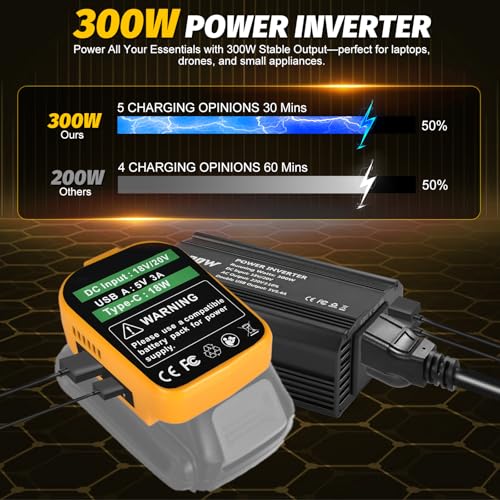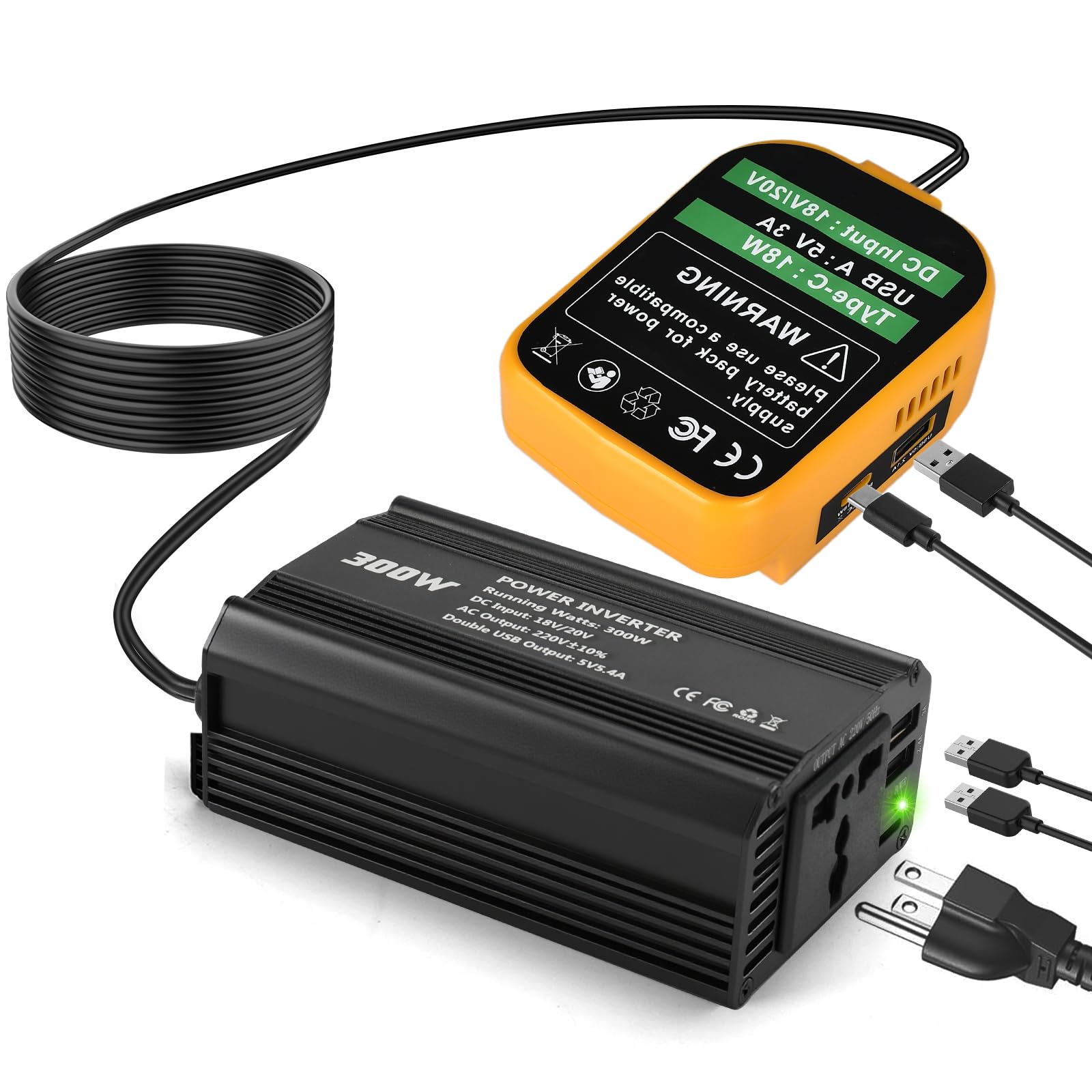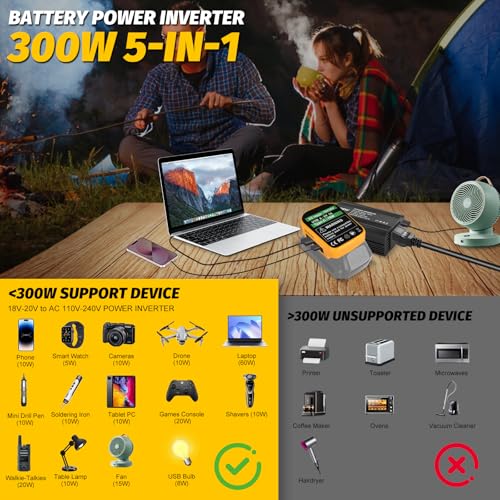 5-Ports 300W Power Inverter for Dewalt 18V Battery, DC 18V