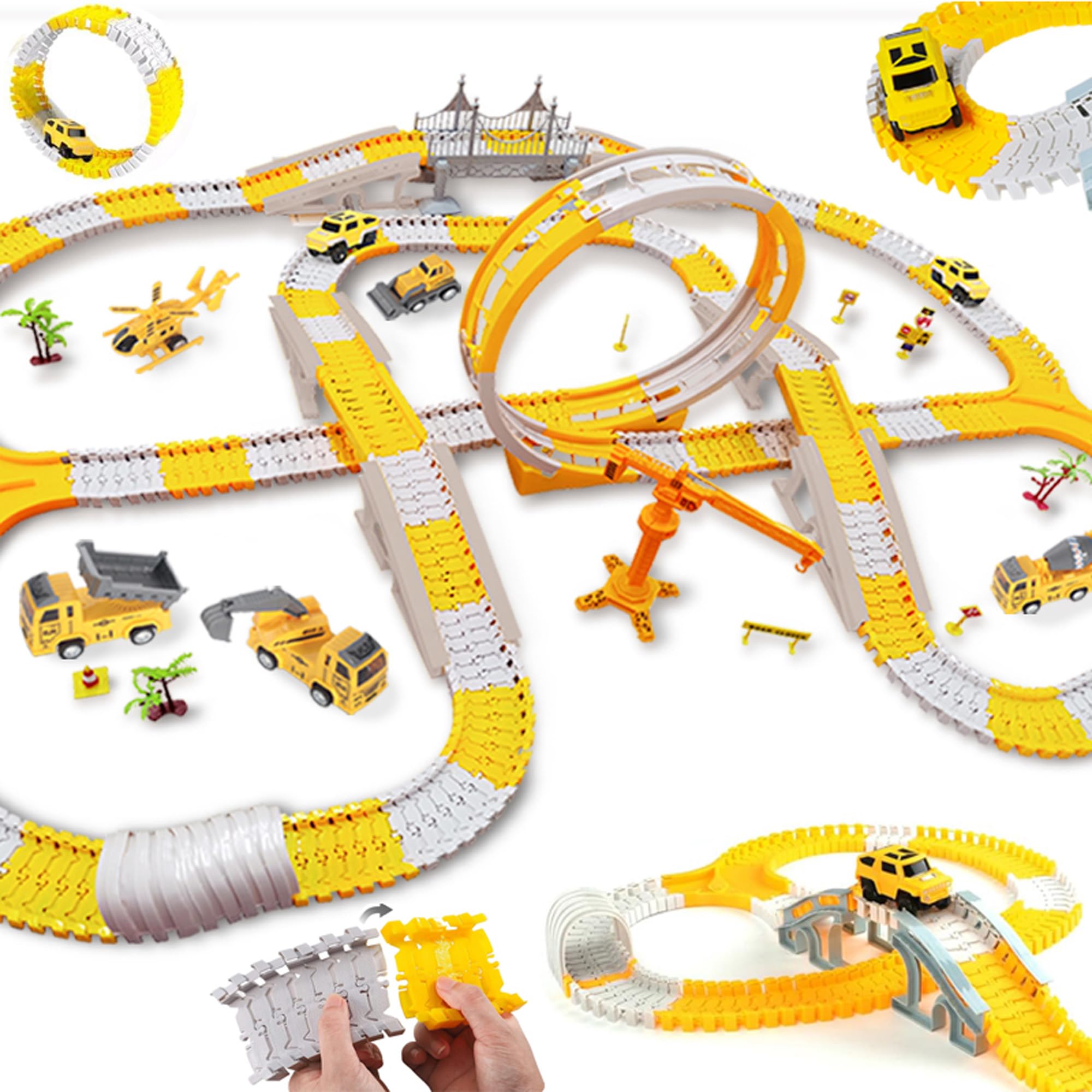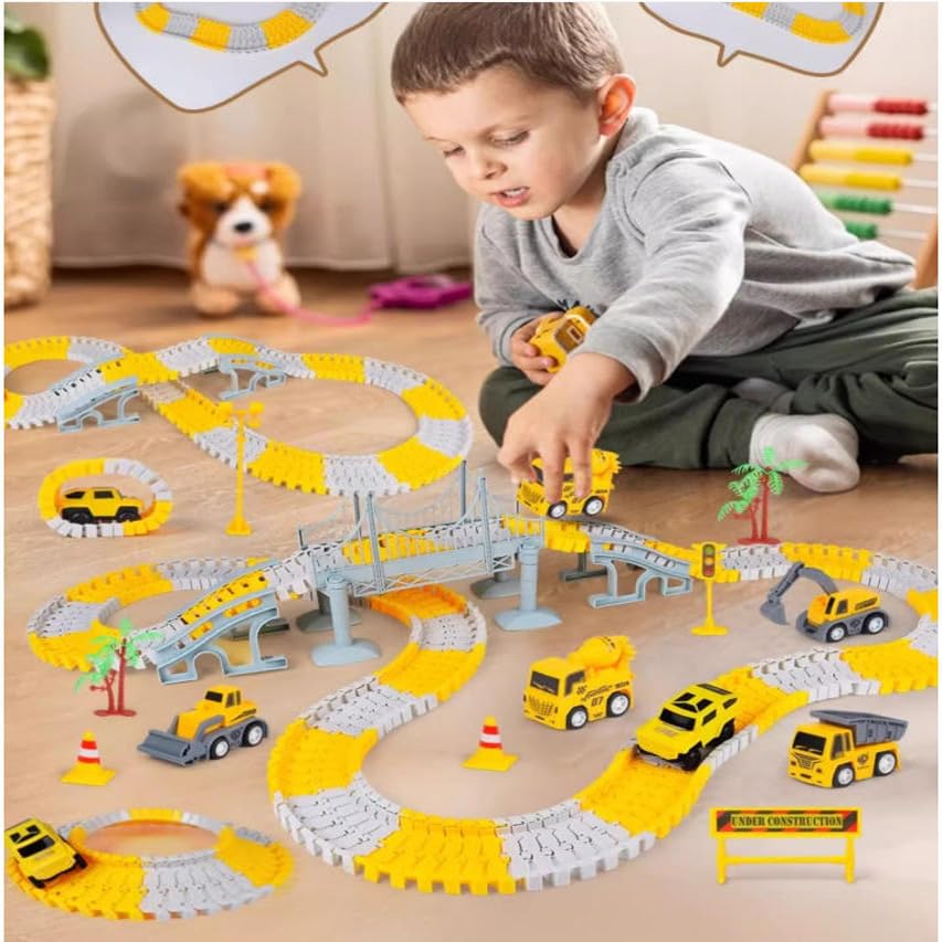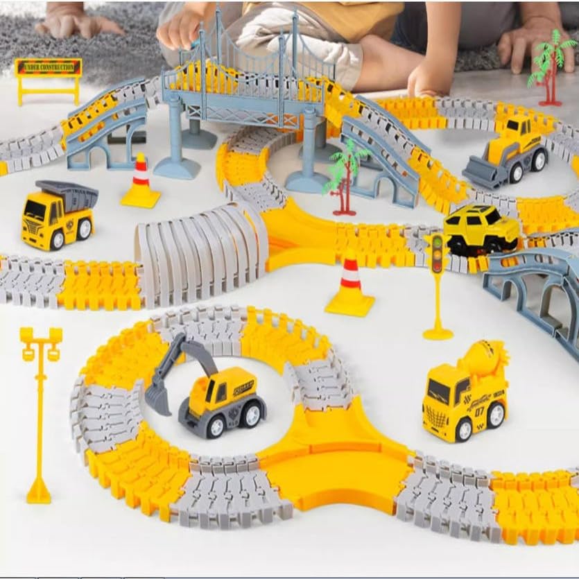 500 Pcs Construction Truck:Our construction toys include multiple flexible track components, multiple construction trucks, and trees and bridges. Advanced settings, You can assemble the track into various lengths of 2M, 3M, 4M, and 5M, with simple gameplay and the ability to assemble all 500 accessories, build your own architectural kingdom for your little baby!