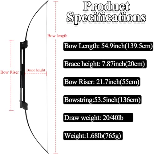 - Foldable design: This long bow features a foldable design, making it easy to assemble, disassemble, and store. You can place the product in the included bow case and take it to your favorite shooting location for practice arrows.