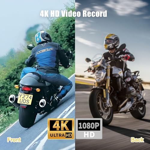 Dual Camera Recording System: Features front 4K and rear 1080P motorcycle GPS navigation cameras with H.264 compression, automatically locking footage during collisions via G-sensor. Includes 64GB card (supports up to 128GB) for continuous loop recording of your motorbike journeys.