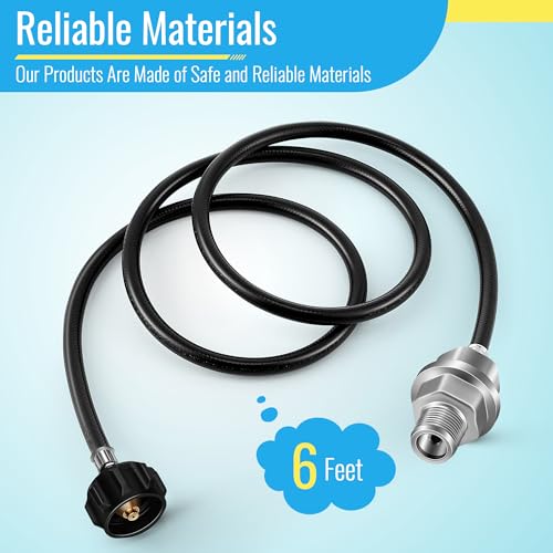 Easy Propane Connection: simplify your setup with our 6 ft propane hose extender; Compatible with a QCC1/Type1 adapter, it seamlessly connects to 20-45 lb propane tanks; Enjoy an easy and hassle free connection process that takes less than two minutes and requires no additional tools, ensuring safe operation