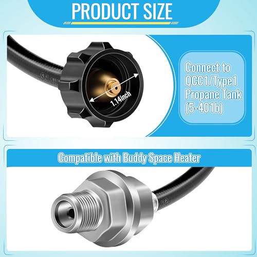 Versatile Compatibility: designed with flexibility in mind, this propane adapter hose is suitable for a wide range of propane powered appliances, Compatible with Buddy Heaters and Big Buddy; It is the ideal solution a steady supply of propane for your portable and stationary propane appliances, making their performance and reliability
