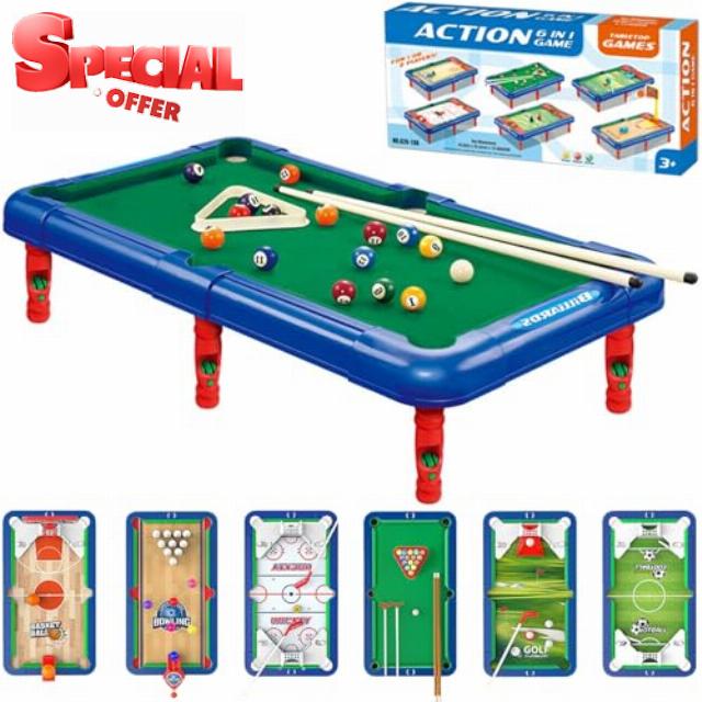 Function: 6-in-1 (Tabletop Soccer, Air Hockey, Billiards, Basketball, Golf, Bowling)