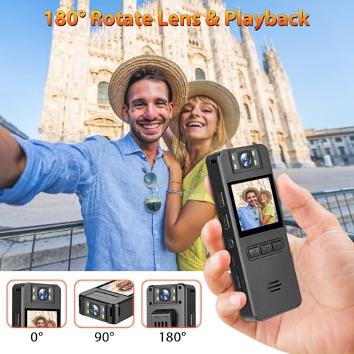 64GB Mini Body Camera, 1080P Video Camera with 180°Rotatable Lens, 120° Wide Angle, Audio Video Recording, Portable Compact Personal Camera, Civilian Personals, Police