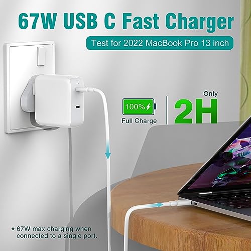 - 67W USB C Charger: IFEART 67W USB C fast charger supports Power Delivery 3.0, PPS Galaxy Super Fast Charging and more. With a single maximum power of 67W, it can provide fast and efficient charging for most laptop, smartphone, switch and other USB-C devices. Full charge for MacBook Pro 13" 2022 in just two hours