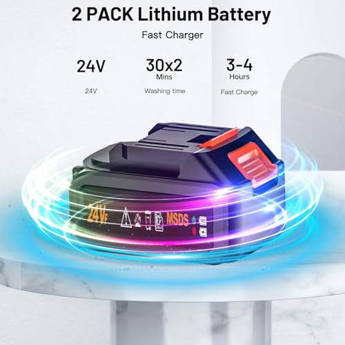 【2 Batteries for Non-Stop Cleaning】Tired of being interrupted while cleaning? Our cordless pressure washer comes with two high-performance, replaceable batteries. When one battery dies, simply switch to the other for uninterrupted cleaning. The powerful battery life is enough to remove even the toughest dirt from cars and curbs, ensuring effortless, uninterrupted cleaning.