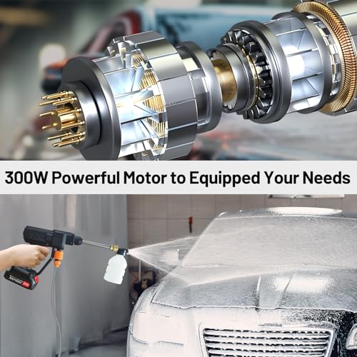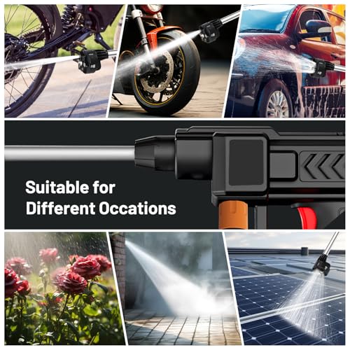 【Portable Cordless Pressure Washer】Tired of tangled hoses and limited reach? Meet the housiwill cordless pressure washer, your go-to solution for powerful and portable cleaning! It’s robust motor projects water up 6 to 10 meters, making it easy to quickly clean your car and all your outdoor spaces and equipment. Designed for complete freedom, it's lightweight and cordless.