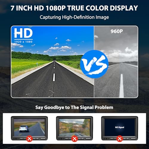 - Dual Split Screen & Parking Lines: Our 7-inch monitor with 1920×1080 pixels features with dual split screen, so that you can view two cameras at the same time if you need observe your surroundings. The parking lines will make your parking more easily and convenient. You don't need to have someone to get off the vehicle and assist you to park.