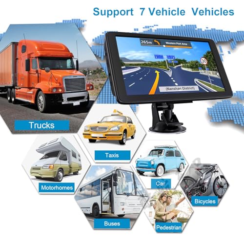 - 【7 Inchs Touch Screen】NAVRUF GPS navigation for car truck comes with 7 inchs large touchscreen to help you keep a clear view of everything, which providing a better visual experience for safer driving. Bright, easy to read and responsive to touch input. Perfect for trucker and seniors. Thanks to the free suction cup and the glued holder can the GPS navigator for car be mounted not only on the windshield but also on the dashboard. Nice gift for family and friend!