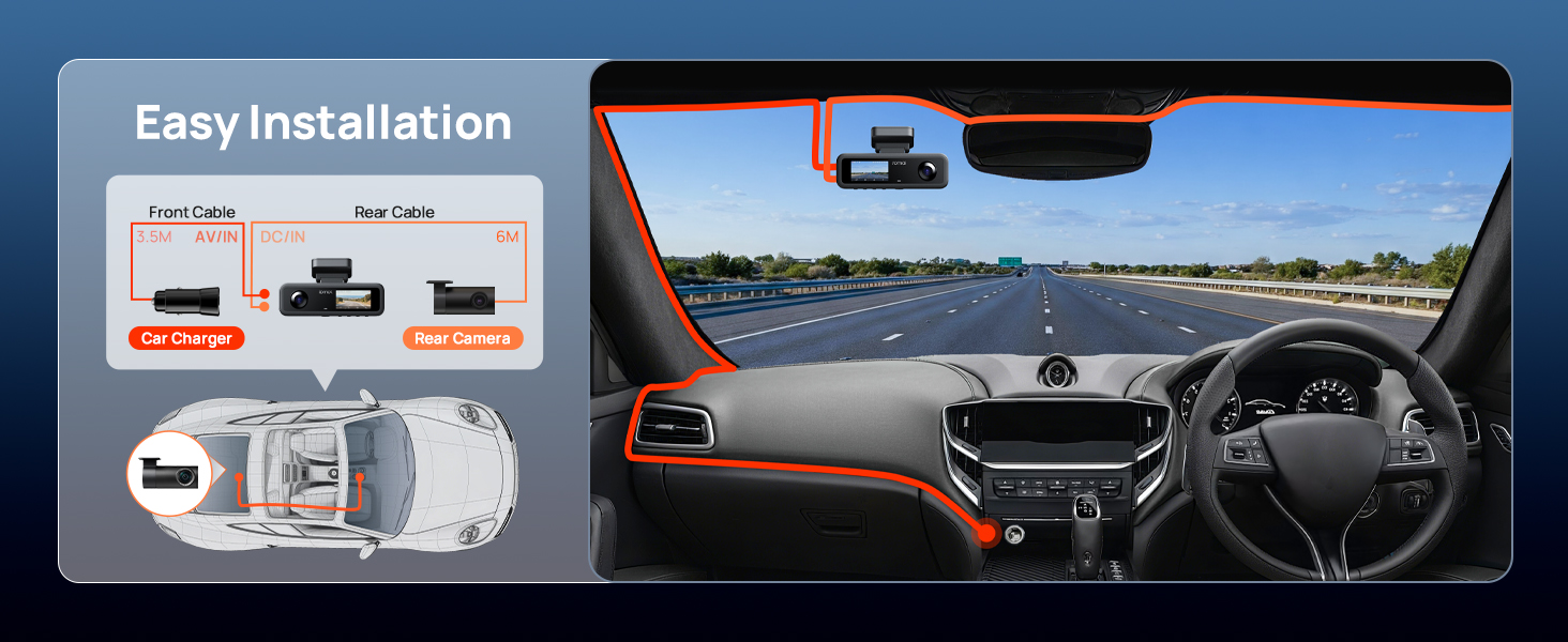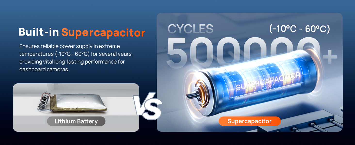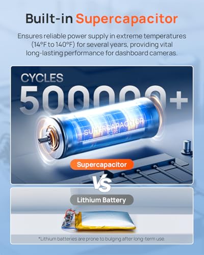- 【Super Capacitor for Safer Use】Advanced supercapacitor tech keeps the dash cam running in temperature extremes, from summer heatwaves to winter frosts, ensuring reliable operation and a longer, safer lifespan for your vehicle and auto-saves footage if power is lost.