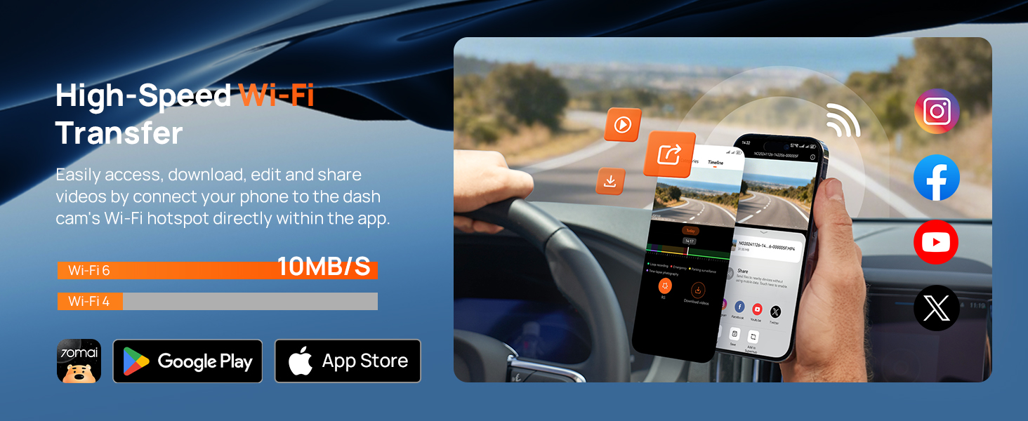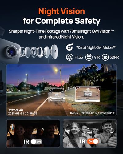 - 【Effortless App Connectivity & WiFi 6】The free 70mai app allows you to easily adjust settings, preview footage, edit, and share videos online. With always-on Wi-Fi 6 delivering, enjoy the fastest and most stable connection to the app, seamless browsing and downloading of your high-resolution videos directly to your phone.