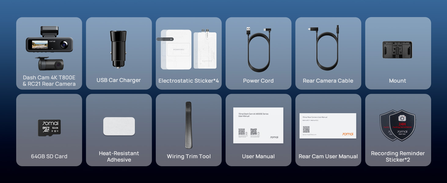 ![]() 70mai T800E | ![]() 70mai 4K T800 | ![]() 70mai A410 | ![]() 70mai A510 | ![]() 70mai A810 | ![]() 70mai A800SE | ![]() 70mai 4K Omni | |