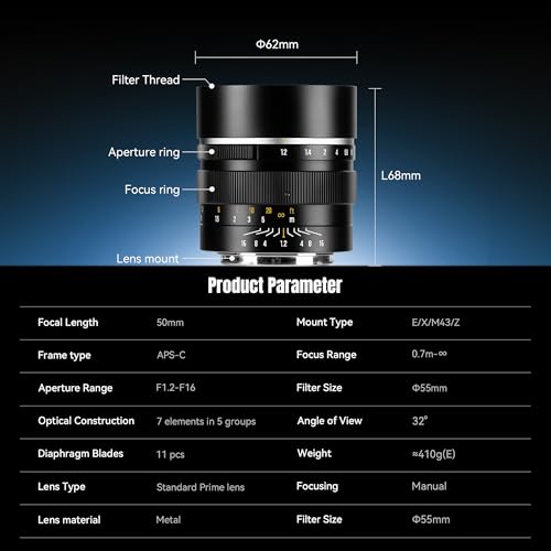 【F1.2 Large Aperture – Stunning Light Intake & Dreamy Bokeh】7artisans 50mm F1.2 lens ultra-large F1.2 aperture provides exceptional low-light performance and beautifully soft background bokeh, allowing your subject to stand out with ease. Perfect for night portraits,atmospheric shots, and creative video work, adding depth and artistic expression to every frame.
