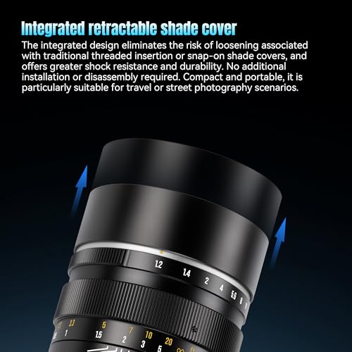 【Integrated Lens Hood – Better Flare Control】7artisans 50mm F1.2 lens designed with a built-in lens hood, the lens effectively reduces flare, ghosting, and stray light, improving contrast and overall image clarity. Ideal for outdoor and backlit shooting—no need for extra accessories.