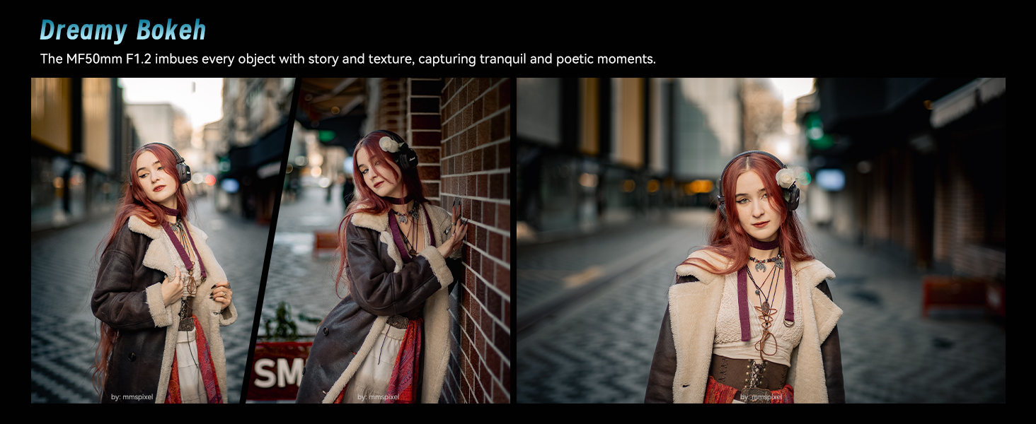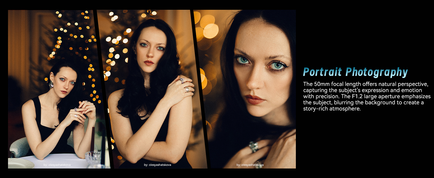 【50mm Standard Focal Length – Natural and Versatile Perspective】 The 50mm focal length provides a natural perspective similar to the human eye,making it one of the most popular standard prime lenses. Whether for portraits, street photography, still life, or everyday shooting, the 7artisans 50mm F1.2 lens can handle a variety of scenarios, delivering lifelike images.