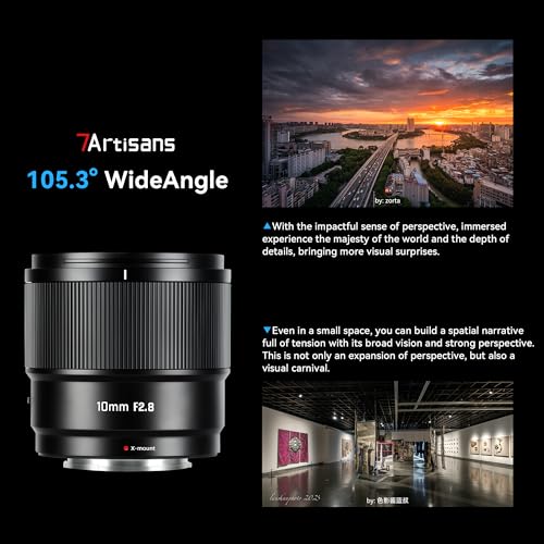 【Ultra-Wide 105.3°Field of View】:The 10mm focal length offers an expansive 105.3° field of view with near-zero distortion.7artisans AF 10mm F2.8 lens captures landscapes, portraits, architecture, interiors, and even miniature-style shots, unlocking limitless wide-angle creativity.