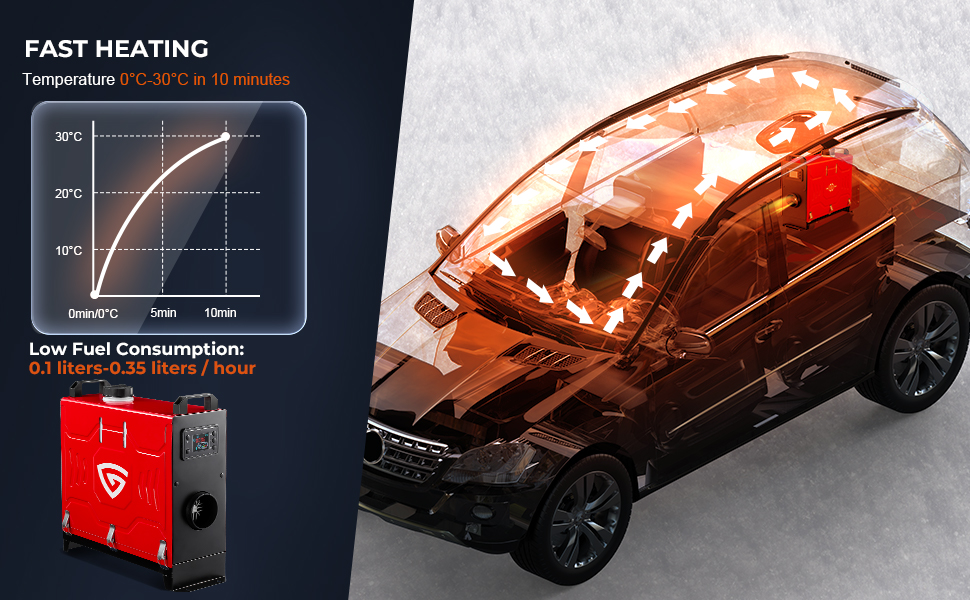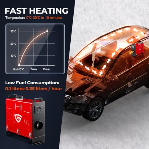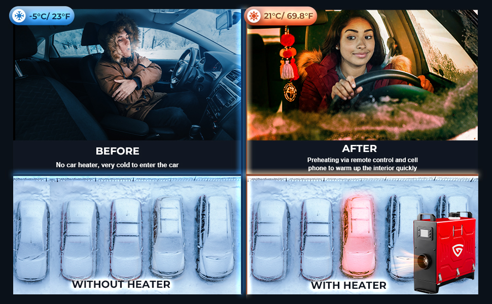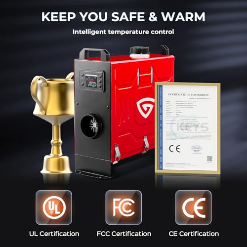 【Compact All-in-One Design and Wide Compatibility】The vertical all-in-one construction integrates the heater body, fuel tank, and control system for easy installation and space-saving use. Compatible with 12V and 24V diesel systems, it works across cars, vans, RVs, trucks, boats, and construction vehicles—ideal for travel, work, or outdoor use in cold climates.
