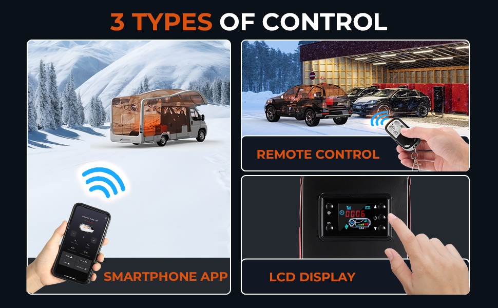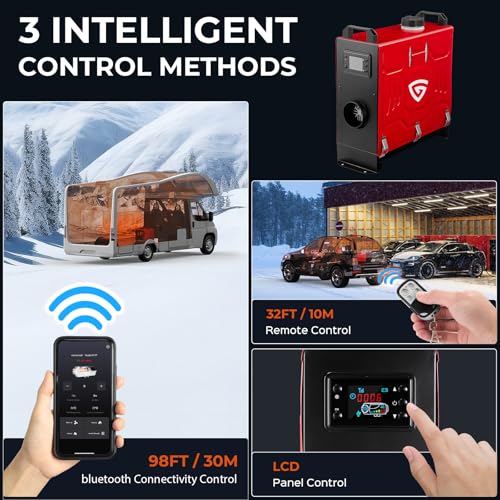 【Multiple Control Options for Maximum Convenience】Operate your heater via Bluetooth APP, remote control, or the built-in LCD display. Adjust temperature, fan speed, and heating modes from anywhere in your vehicle or nearby. The APP and remote provide flexible, long-distance control, giving you a comfortable cabin before you even step inside.