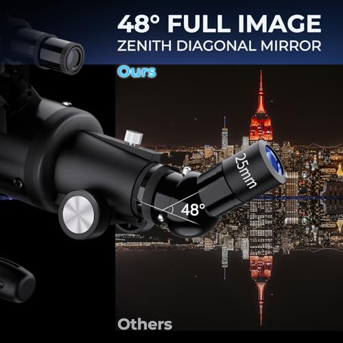 COMPLETE VIEWING SYSTEM – Includes a 48° full image zenith diagonal mirror for comfortable observing angles and a 5×24 finderscope for easy target acquisition. The package also comes with a smartphone adapter, enabling you to capture and share images of your astronomical discoveries.
