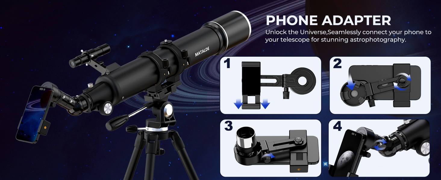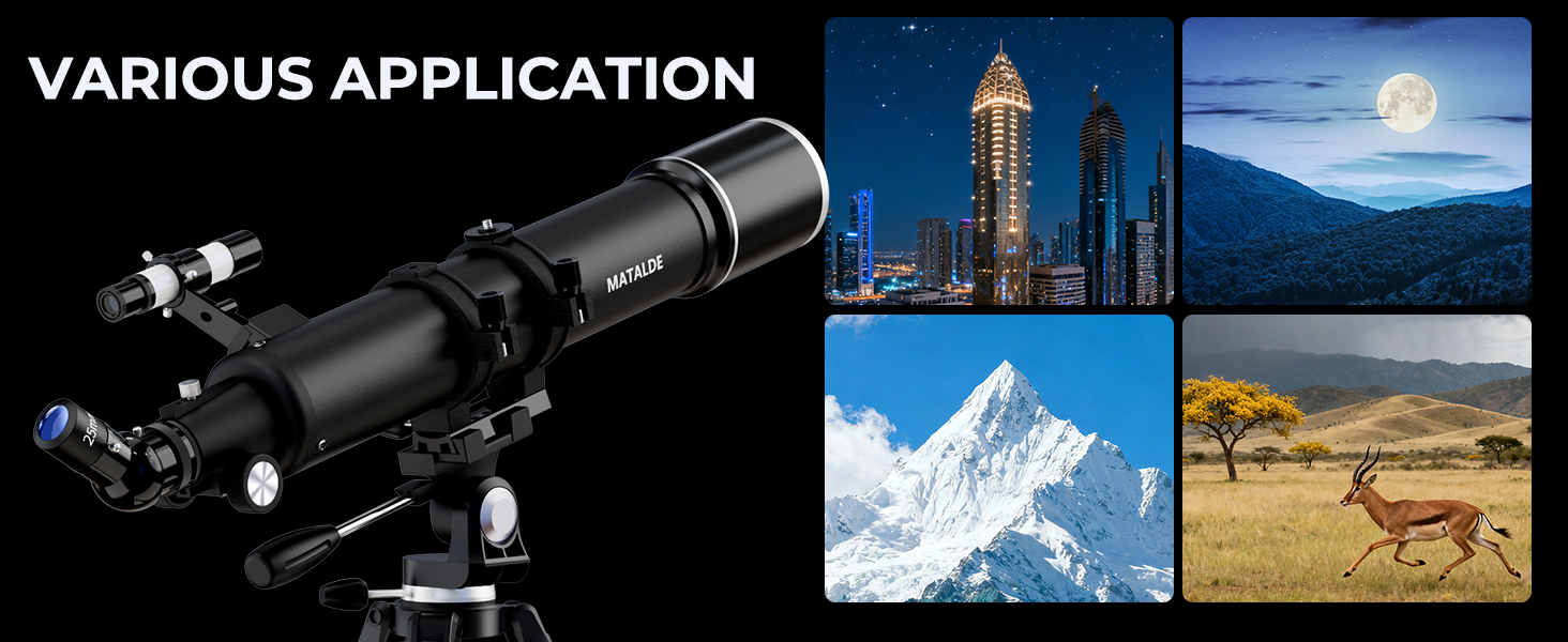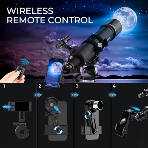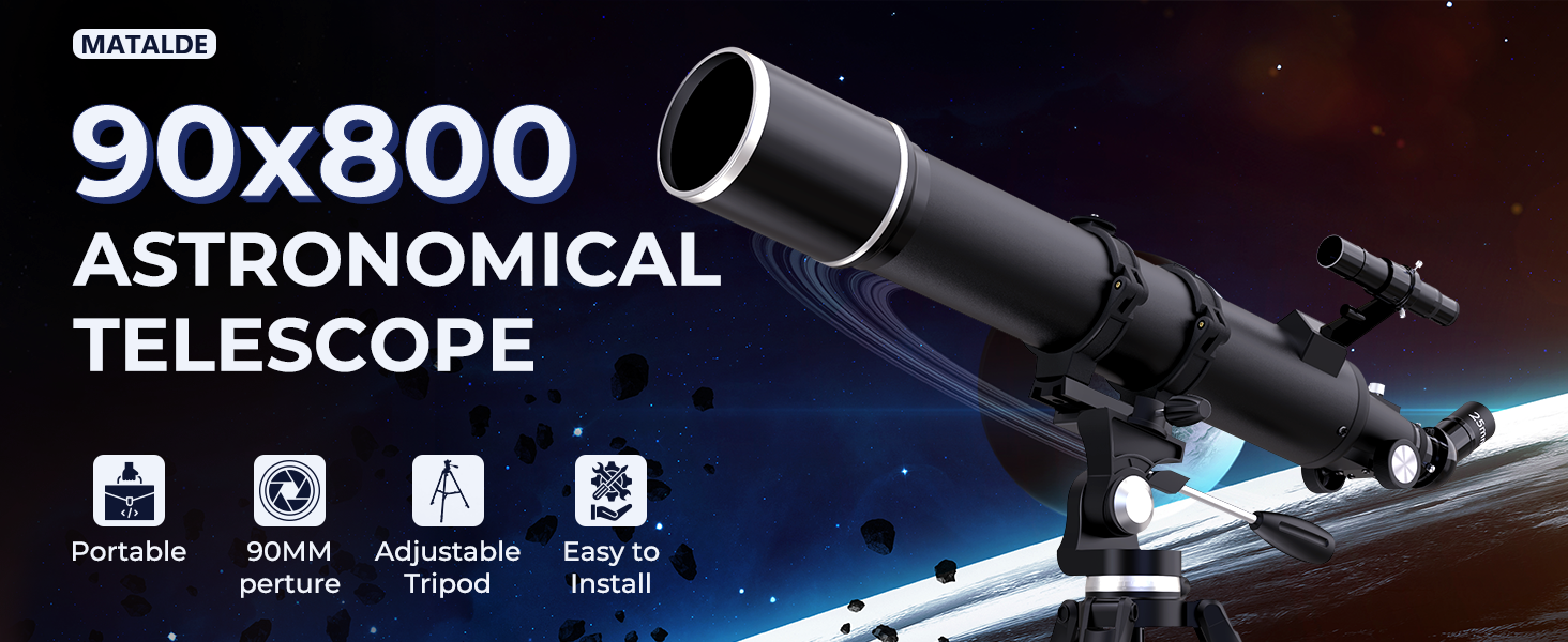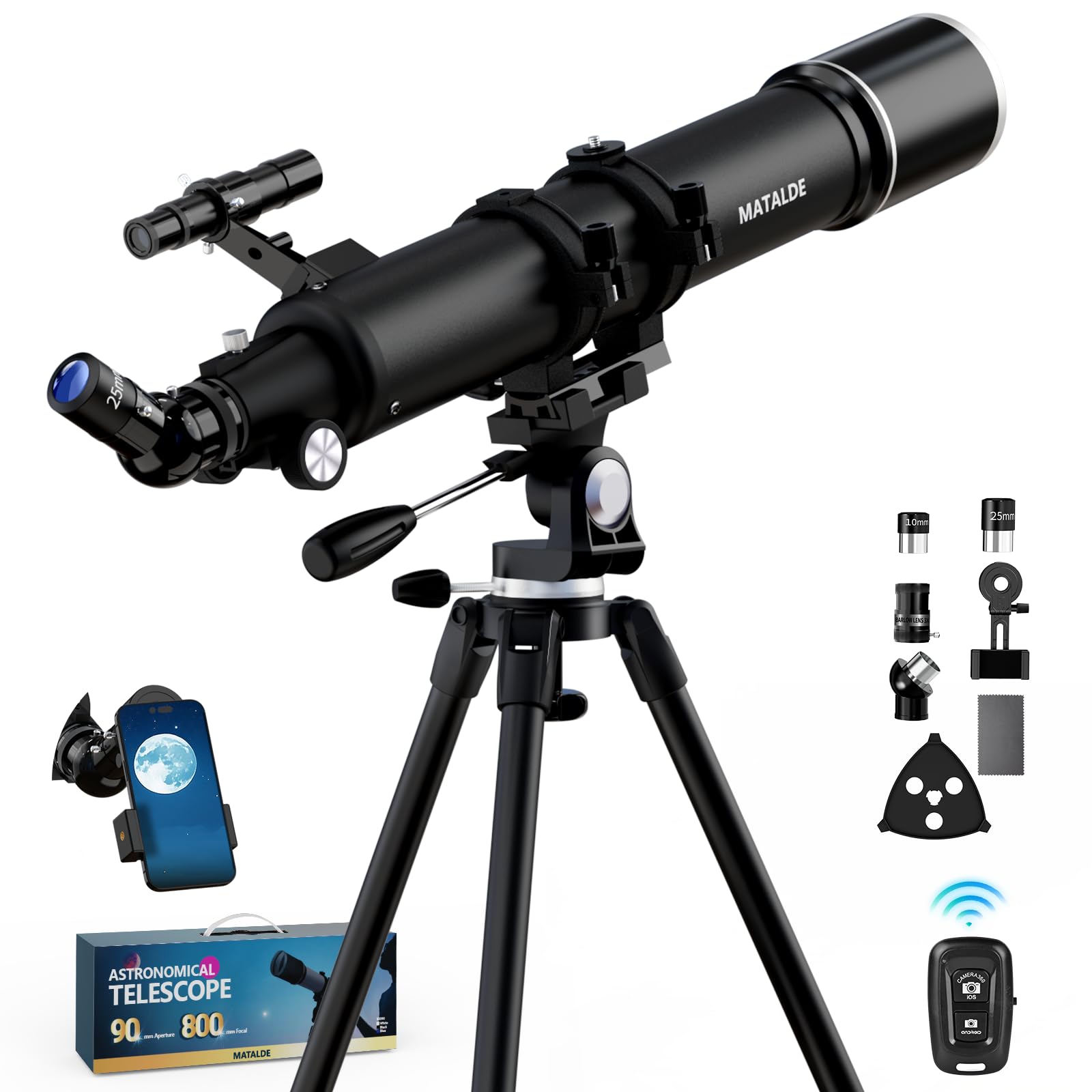 90MM LARGE APERTURE & 800MM FOCAL LENGTH – Experience exceptional light gathering and clarity with our advanced refractor optical system. The 90mm large aperture and 800mm focal length (F/8.8 ratio) work together to deliver stunningly sharp, high-contrast images of celestial objects, from Saturn's rings to distant star clusters.