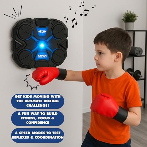 abeec LED Music Boxing Machine For Kids | Interactive Wall-Mounted Punch Pad With Gloves | Fun Fitness Toy For Boys And Girls Age 3+ | Rhythm, Cardio And Coordination Game With Lights And Music