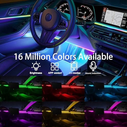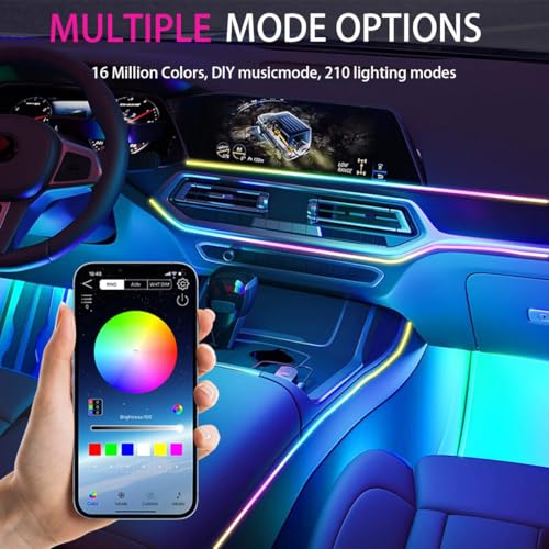 16 Million Colors & 210 Modes via Smart Control:Command every hue and effect with intuitive APP/remote control. This car rgb led strip supports music sync,dynamic gradients,and static colors—transforming your interior trim lights into a responsive visual experience.The ambient led strips for car adapt to driving moods, making every journey immersive.