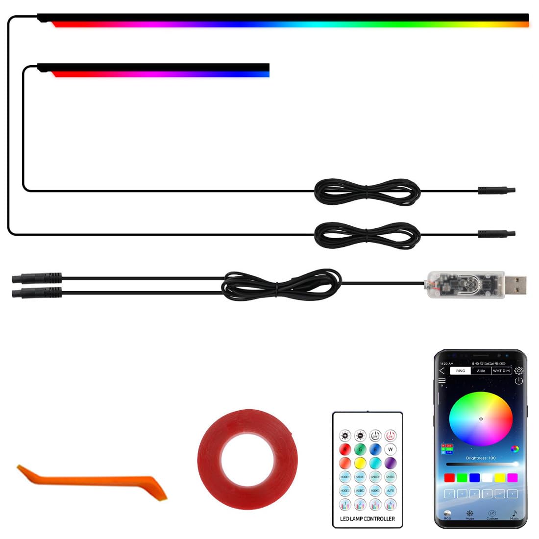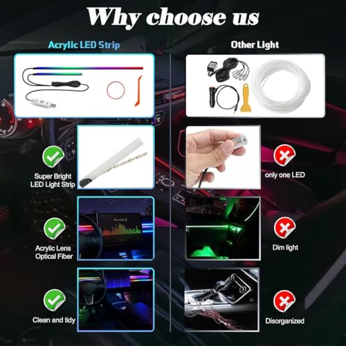 Acrylic Ambient Interior Lighting Car LED Strip Kit 2 in1 110cm+35cm LED RGB Tape Light with APP Control,16 Million Colors,210 Modes for Car Cabin Trim Dash Decoration.