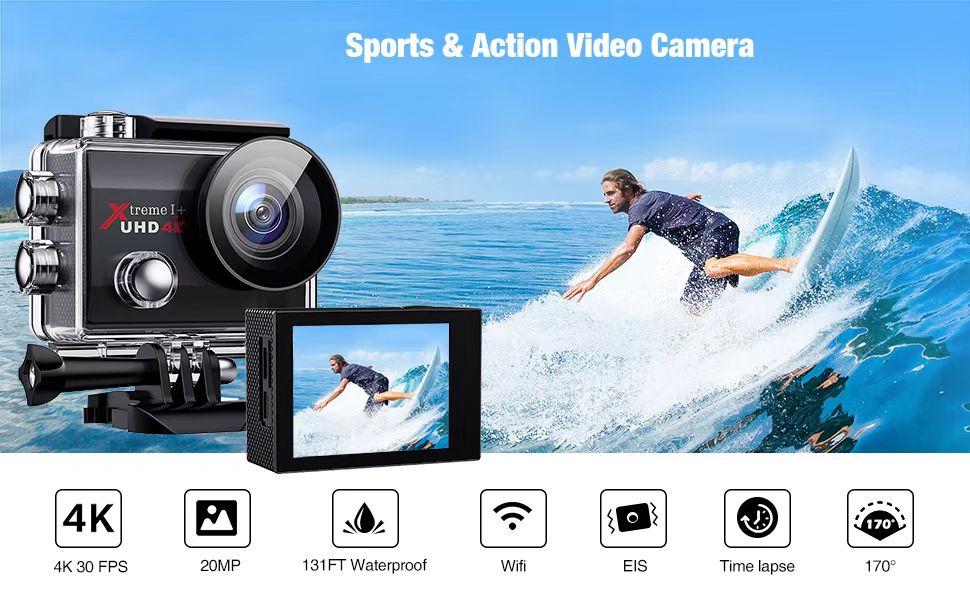 - ❃【4K 20MP Resolution & Waterproof】This action camera supports 4K video resolution, 20MP photo resolution. The video & photos are more clear and vivid. Equipped with a waterproof case, can used as an underwater camera for swimming, diving and other underwater sports.