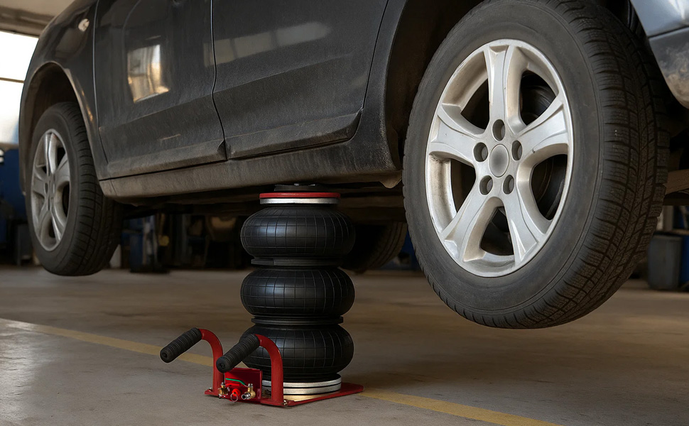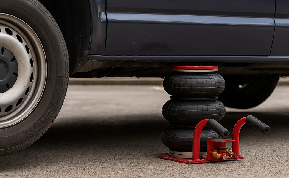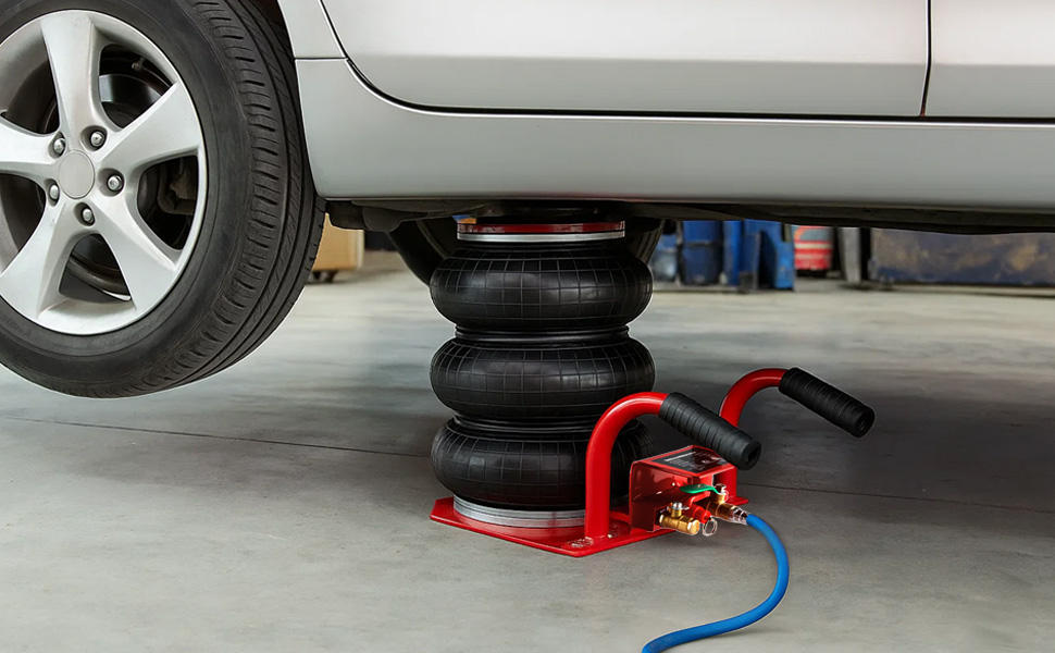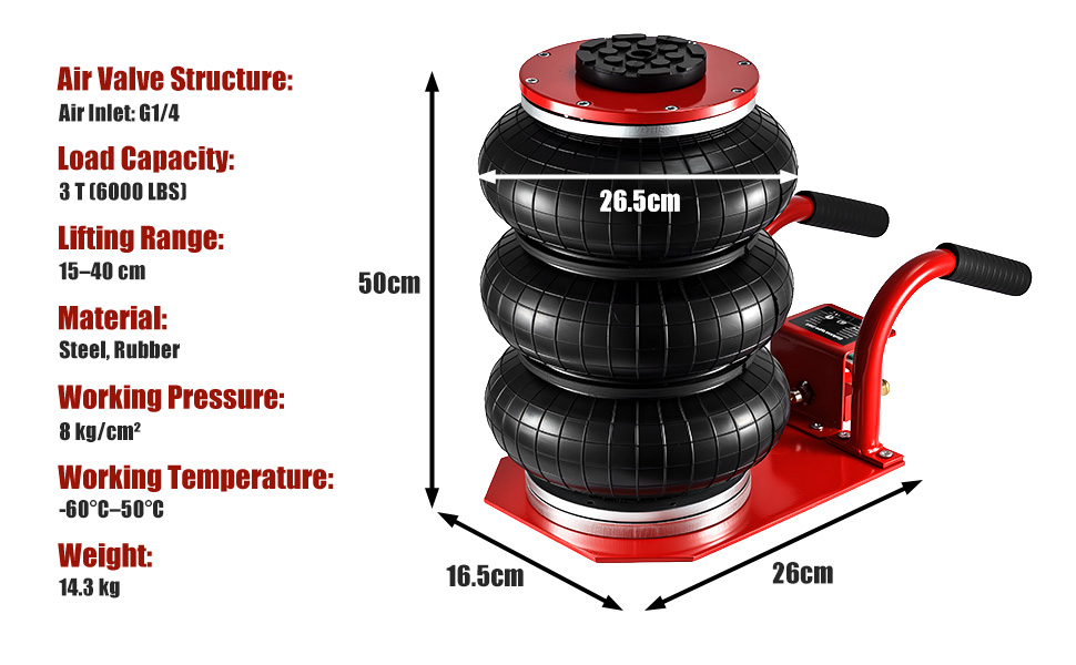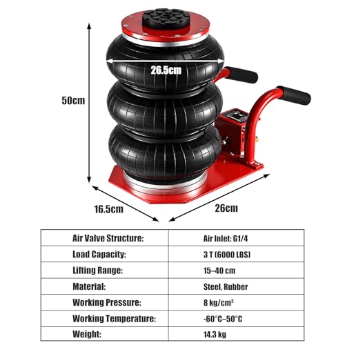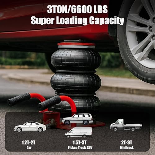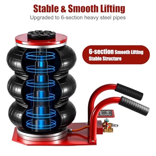 [Portable] The three-airbag jack features dual rubber handles and a compact design, ensuring easy operation and giving you complete control. Its space-saving design makes it easy to carry and store. Utilizing the powerful force of compressed air, it achieves unprecedented ease and speed! Effortlessly lift heavy vehicles. Whether for repetitive lifting tasks in a professional repair shop or a quick tire change at home, it's the ideal choice.