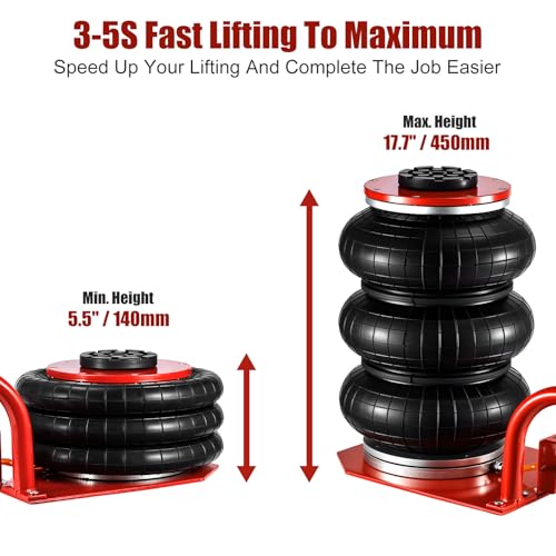 Air Bag Jack 3.5 Ton Capacity Pneumatic Heavy Duty Quick 3-5 Second Car Lifting Jack Triple Bag 16.5-40cm/16 Inch Lifting Range for Automotive Repair Shop and Garage Use Universal