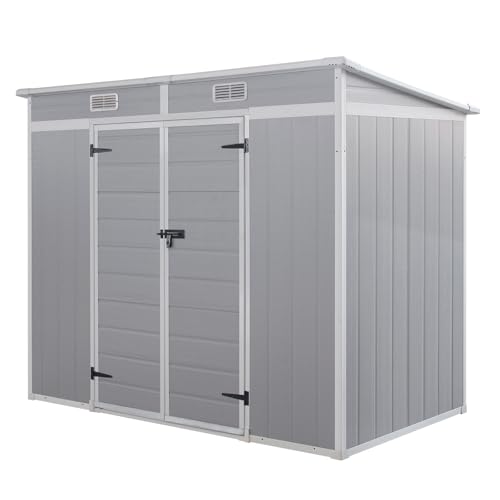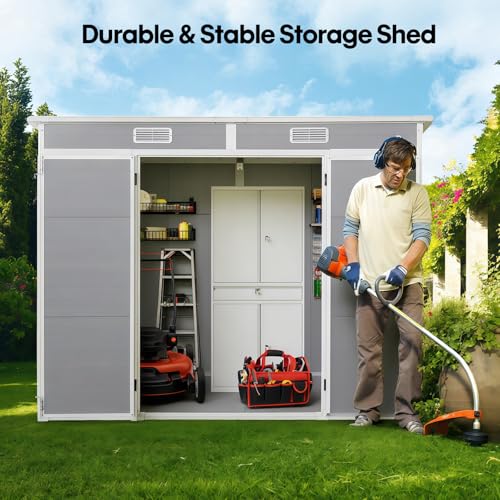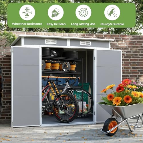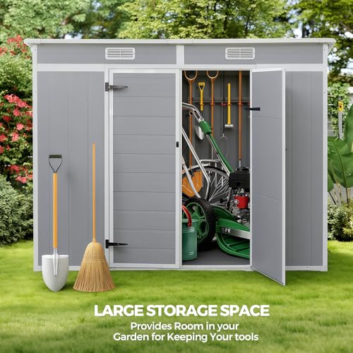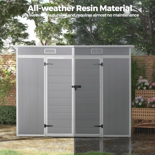 All-Weather Outdoor Storage Plastic Shed, Gray Plastic Material, Double Door Design with Window, Garden Storage for Bikes and Tools (2265mmx1120mmx1830mm)