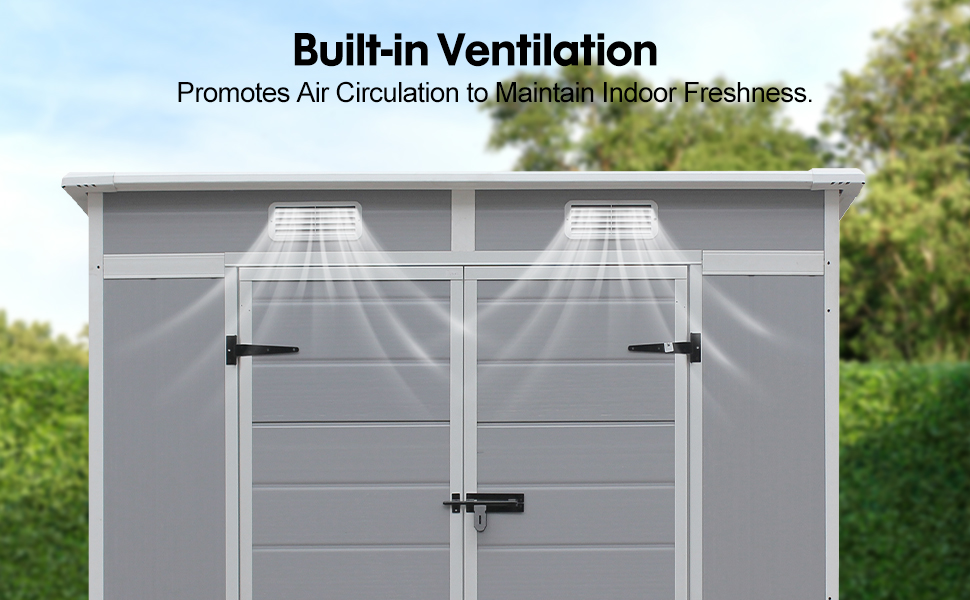 ALL-WEATHER CONSTRUCTION: Made from durable Plastic material that withstands various weather conditions, featuring ventilation panels and a sloped roof design for water drainage